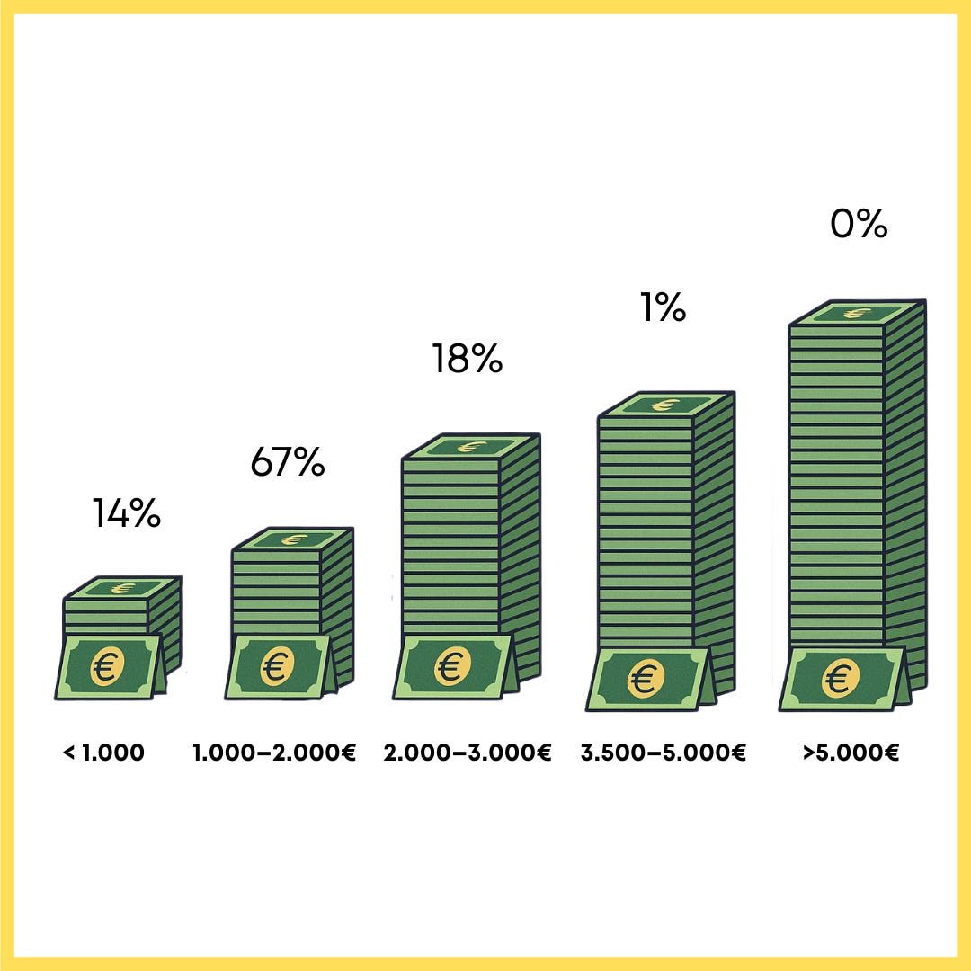 La fascia tra 1.000 e 2.000 euro è quella più affollata, ma non significa che non si possa guadagnare di più-